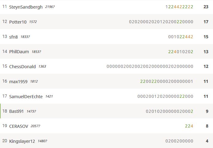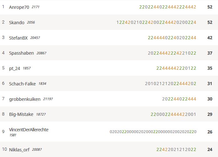Insgesamt trafen sich 26 Schachfreunde auf der Plattform lichess und kämpften sechs Stunden, bei Rockmusik, um Punkte.