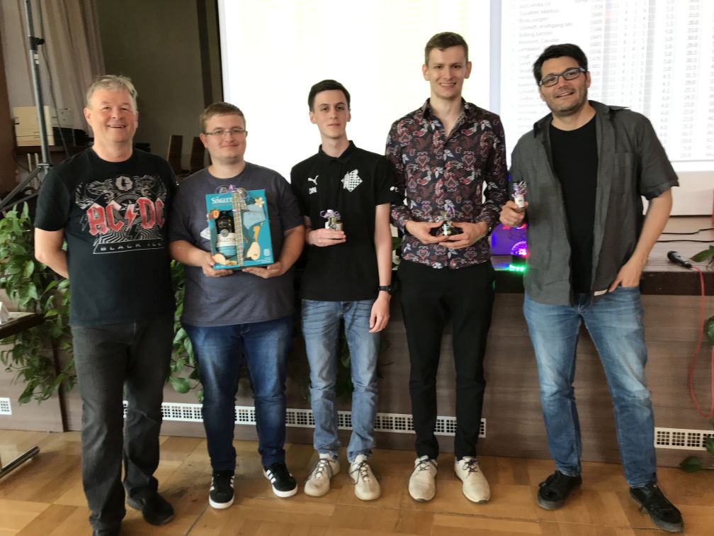 Wolfgang Max Schmitt (Organisator), Timo Helm und Niklas Orf (beide SK 1933 Bad Neustadt), Sebastian Kraus (SC Jäcklechemie Talente Franken), Nikolas Andre Heidel (SC Aschaffenburg)